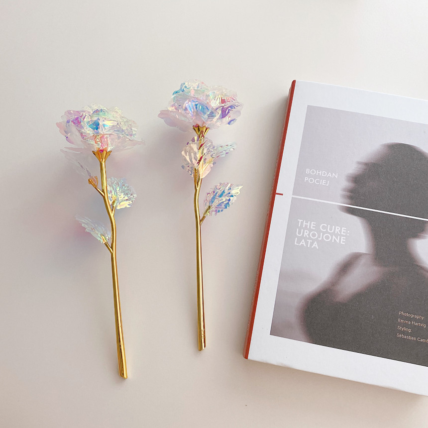 홀로그램 장미 유리 크리스탈 어버이날선물 생일선물 촬영소품 꽃다발 카네이션 : 니드어테이블