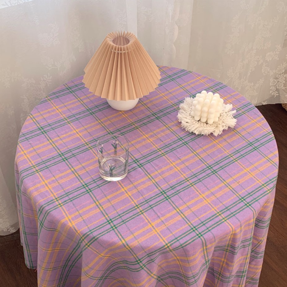 감성 보라 체크 테이블보 다용도 식탁보 가리개원단 커튼 가리개 : 니드어테이블