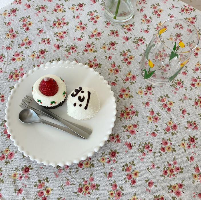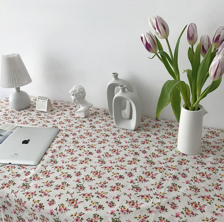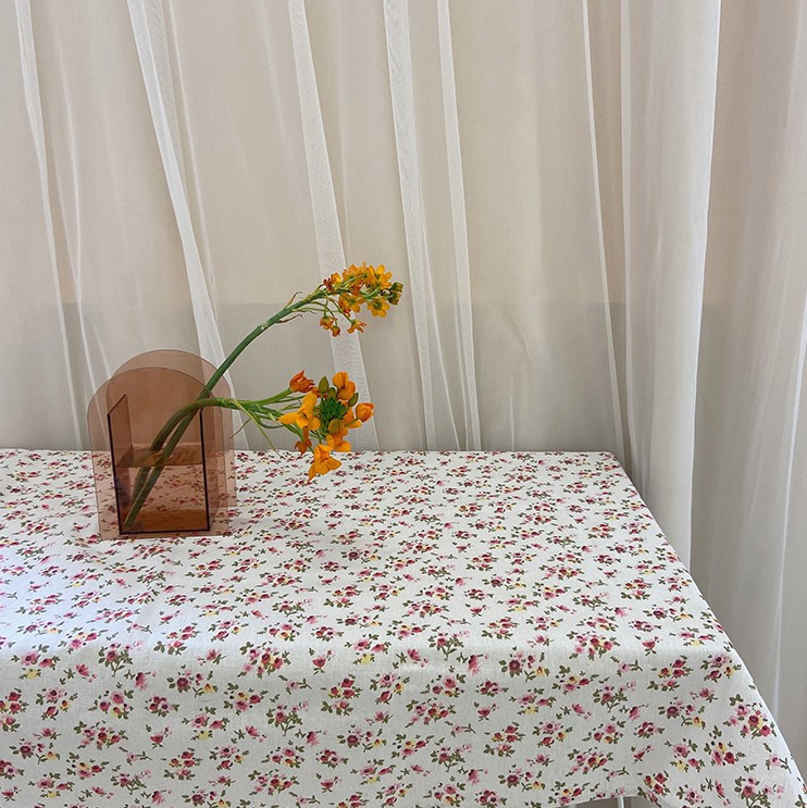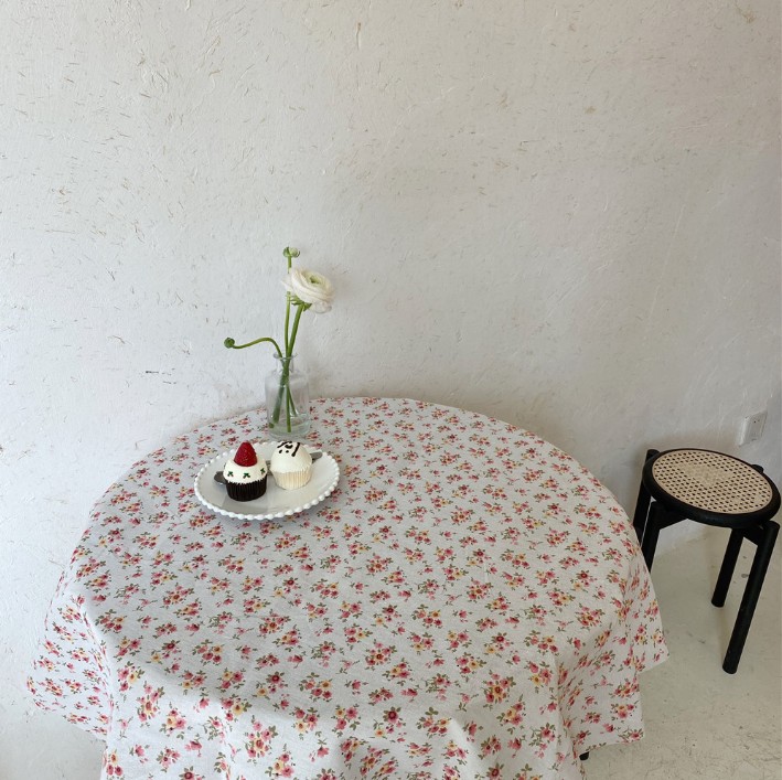 빈티지 레드 꽃무늬 린넨 테이블보 빈티지 나염 식탁보 인스타 감성 소품 : 니드어테이블