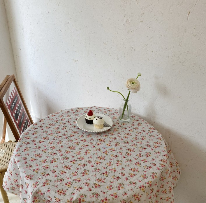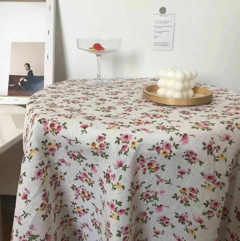 빈티지 레드 꽃무늬 린넨 테이블보 빈티지 나염 식탁보 인스타 감성 소품 레트로 홈카페 무드